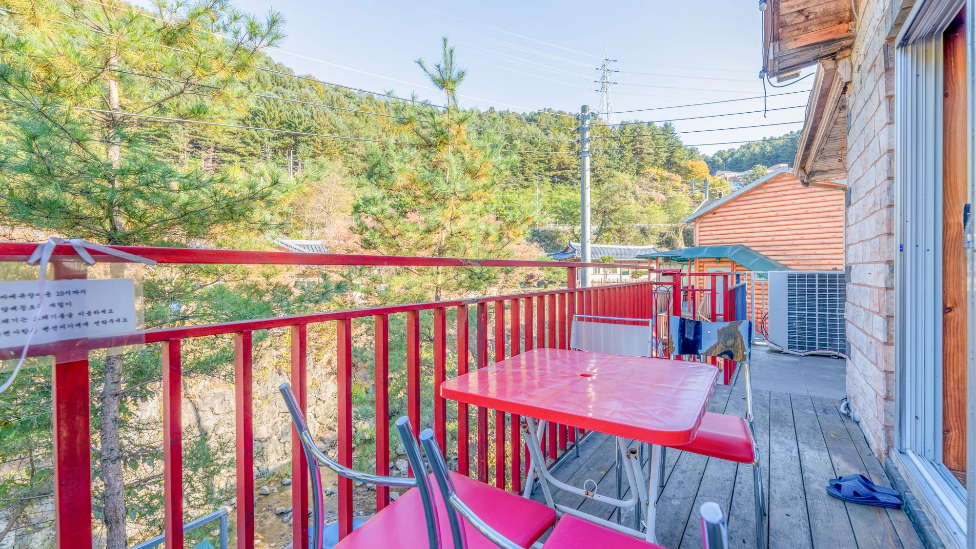 - 집기품목 : 냉장고, TV, 금연, 드라이기, 린스, 바디워시, 샴푸, 세면도구, 에어컨, 와이파이, 인덕션, 전기밥솥, 전자레인지, 취사시설/도구, 침대방, 타월, 테라스, VOD, 족구장, 욕실용품, 계곡전망