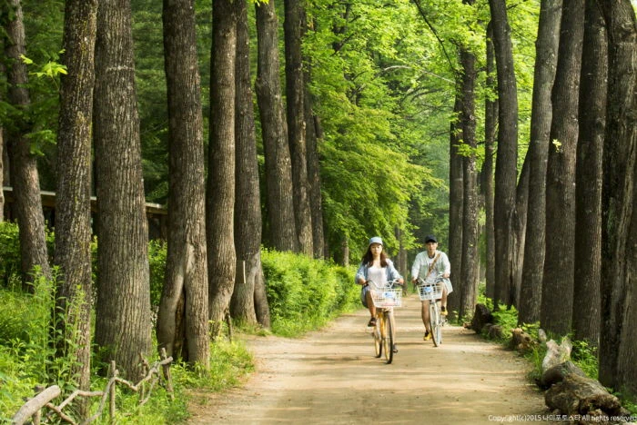 남이섬의 아름다운 풍광과 잘 어우러진 드라마 〈겨울연가〉의 성공으로 아시아권 관광객이 급증하면서 문화 관광지로 탈바꿈했고, 최근에는 북미와 유럽, 중동 관광객뿐만 아니라 국내에 거주하는 외국인이 찾고 싶어 하는 청정 자연 휴양지로 각광받는다. 연평균 입장객 100만 명 수준을 유지하는 남이섬은 국내외 드라마, 영화, 뮤직비디오 등 다양한 방송 매체에서 촬영하러 온다. 자료출처 - 대한민국 구석구석(http://korean.visitkorea.or.kr) 펜션에서 약 20km, 차량 약 32분 거리