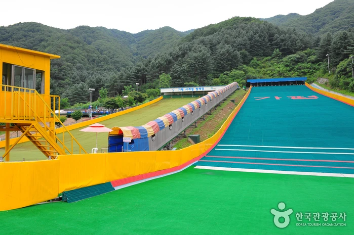 경기도 가평군 상면 덕현리에 위치한 가평사계절썰매장은 인근 조종천과 백옥 같은 계곡이 즐비한 곳으로 자연과 더불어 조화를 이루며 여름에는 물썰매장, 겨울에는 눈썰매장을 운영하여 아이들에게 어린 시절의 추억을 만들어 준다. 9,780㎡의 넓은 부지면적에 조성된 사계절썰매장의 주요시설은 초급용/ 중급용의 슬로프와 수평보행기(무빙워커)가 있고 매점 및 식당의 휴게시설과 남녀 탈의실 및 샤워실, 어린이/일반 야외 수영장, 그늘막 4동 등의 부대시설이 마련되어 있다. 가평군 사계절 썰매장은 수도권 유일의 가족 레저 체험공간의 장소를 제공한다. 자료출처 - 대한민국 구석구석(http://korean.visitkorea.or.kr) 펜션에서 약 18km, 차량 약 25분 거리