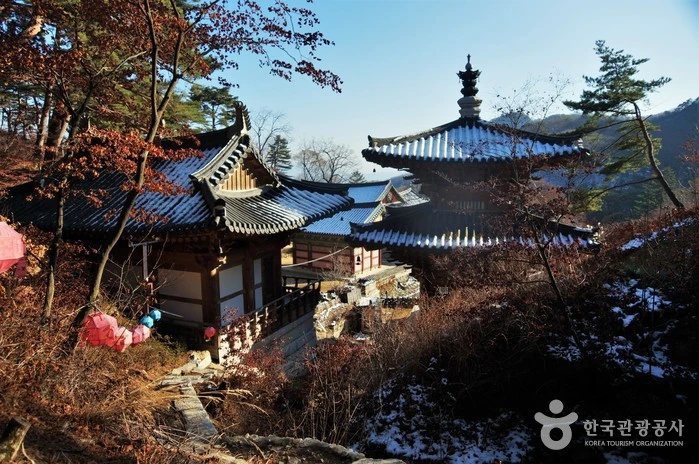 현등사는 가평군내에서 가장 규모가 큰 고찰로서, 신라 제23대 법흥왕 때 인도에서 온 마라아미 스님을 위하여 창건한 것이라 한다. 조선 태종11년(1411) 함허대사가 중수했고, 순조 29년(1829) 화재를 만나 건물이 전소된 것을 이듬해 최윤 원빈스님이 보광전, 극락전, 요사등 건물을 중수, 1984년 충현 스님이 극락전, 보광전 등을 개축하여 오늘에 이르렀다. 경내에는 현재 3층석탑, 지진탑(보조국사사리탑), 화담당경화탑, 함허대사 부도, 북악 부도 등의 문화재와 사찰 건물내에는 아미타불 좌불상, 후불탱화, 동종 등 전래의 유물들이 보존되고 있다. 자료출처 - 대한민국 구석구석(http://korean.visitkorea.or.kr) 펜션에서 약 35.8km, 차량 약 43분 거리
